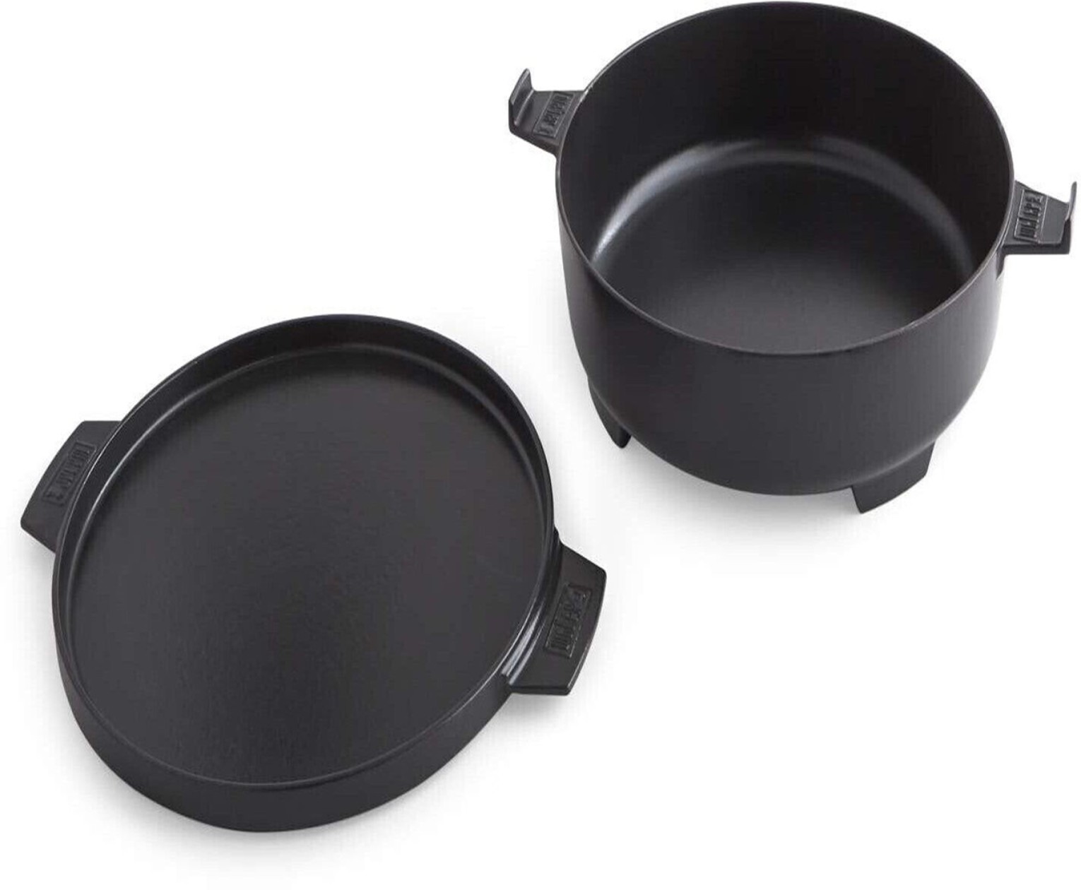 - Traditional Dutch Oven with flat lid, which is also used as a pan. Made of enamelled cast iron coating for easy cleaning. At the same time offers more barbecue facilities