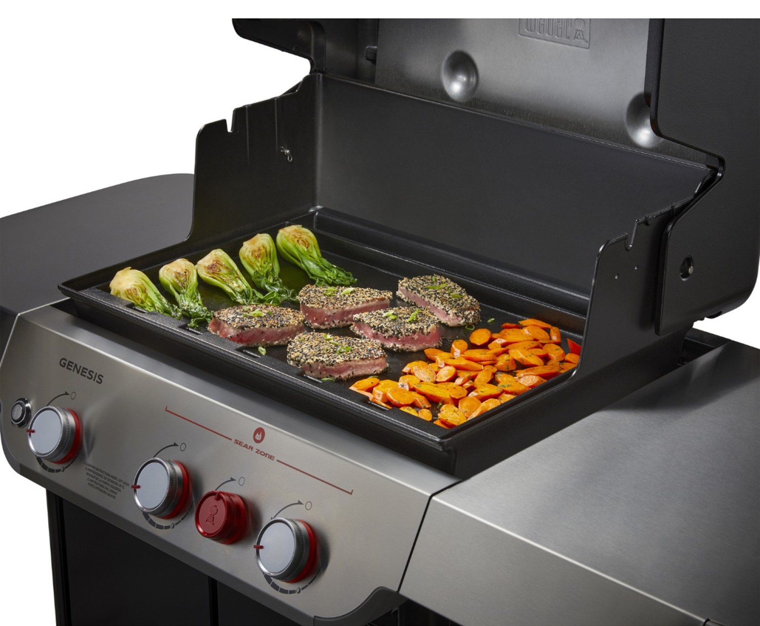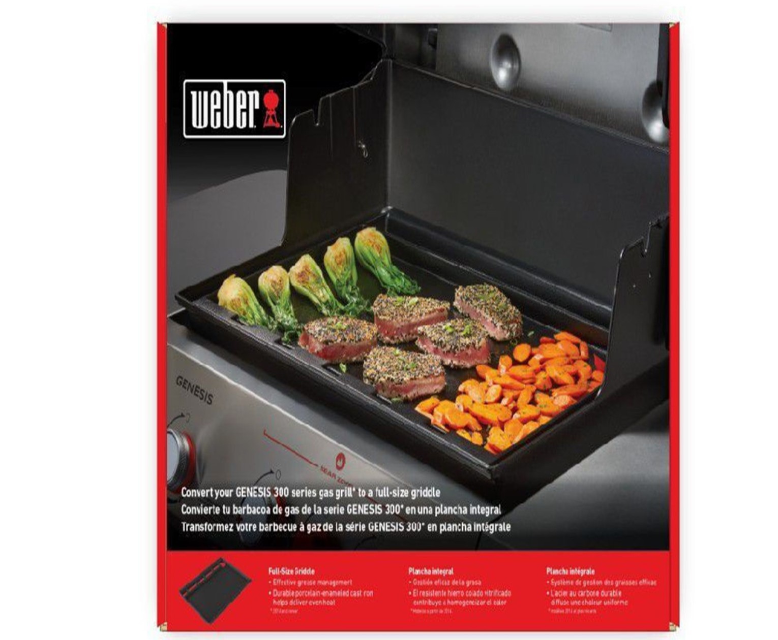 This griddle converts your Genesis 300 series grill to a full format flat top grill. Non-stick surface pre-heats quickly and features grease and scrap management system.