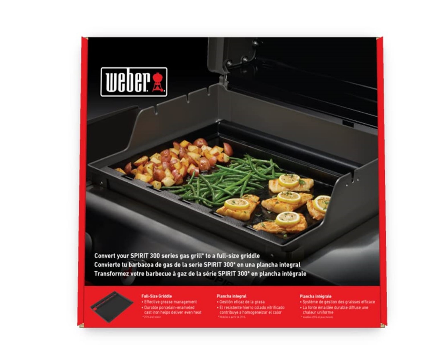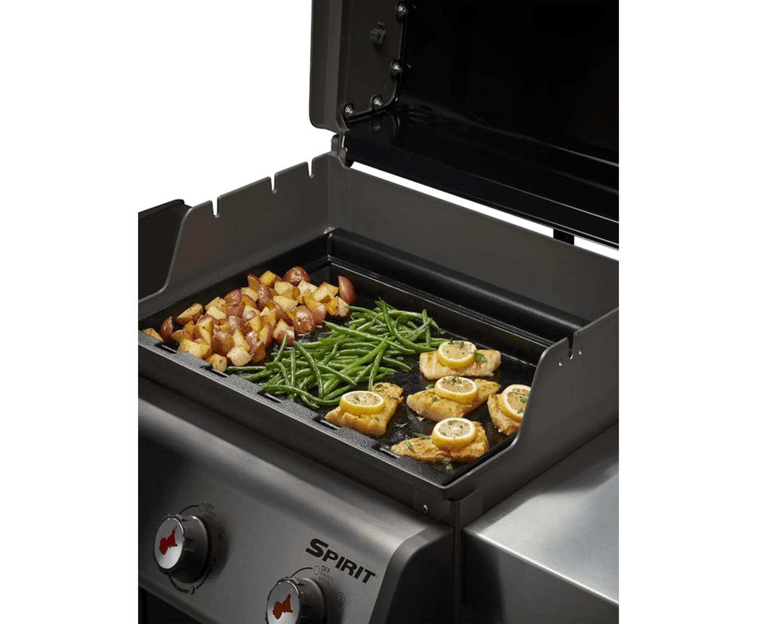 This griddle converts your Spirit 300 series grill to a full format flat top grill. Non-stick surface pre-heats quickly and features grease and scrap management system.