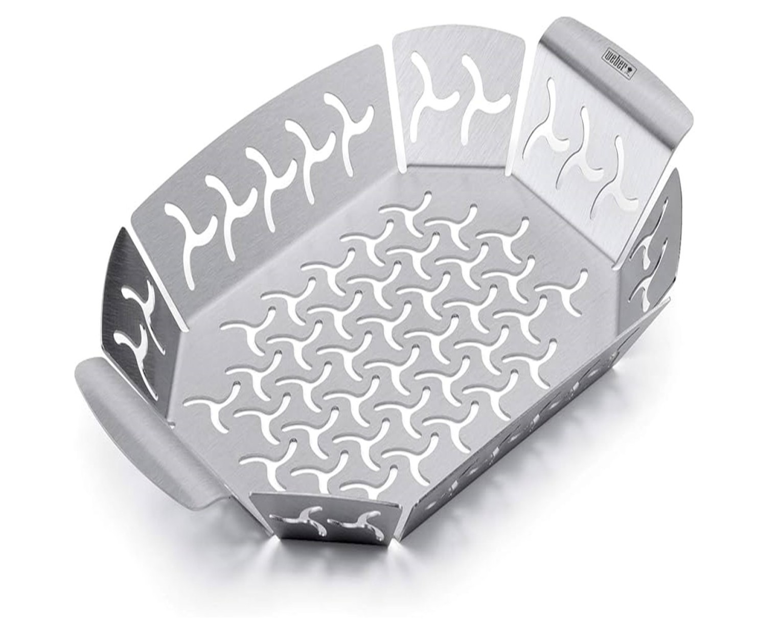 Ideal for grilling vegetables and other small foods on your barbecue. The cut outs allow your food to get that lovely smoky taste that everyone associated with a barbecue. The sturdy shape and handles make it easy to move from the barbecue to the side.