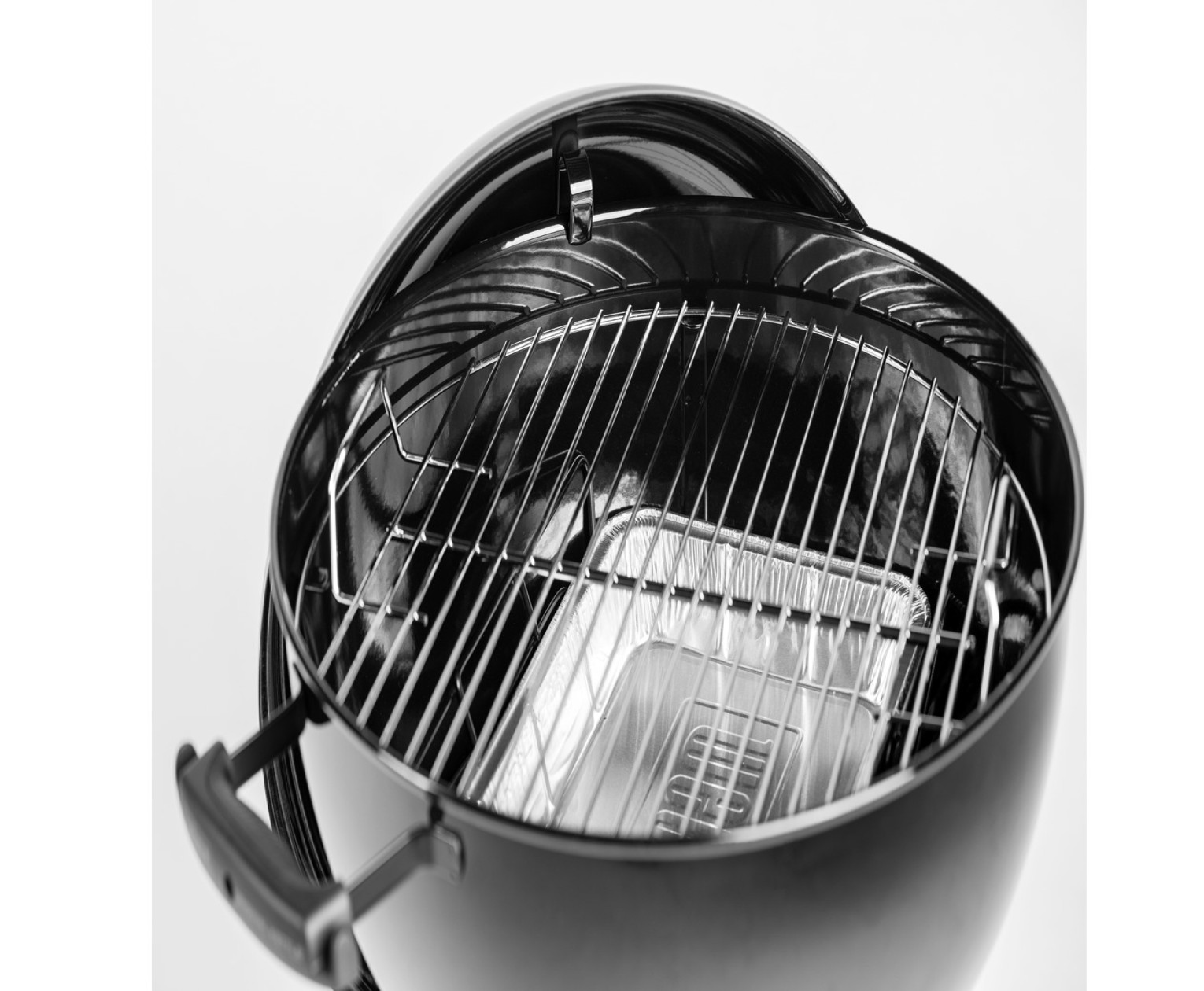 • Lid handle with heat shield: for safe grilling • Porcelain-enameled lid and bowl: durable and easy to clean • Chrome-plated cooking grate: strong and easy to clean • Fixing all three feet with locking function: safe transportation • 3 vents in the boiler and one in the lid: adjustable temperature • Removable ash catcher: easier ash removal • Crack and weather resistant castors • 1 sturdy duroplast handle on the boiler, resistant to high temperature and atmospheric conditi