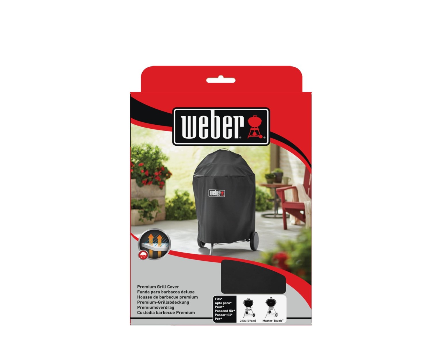 This premium cover in heavy-duty, breathable polyester offers superior weather protection. The velcro strap ensures that the cover stays in place.