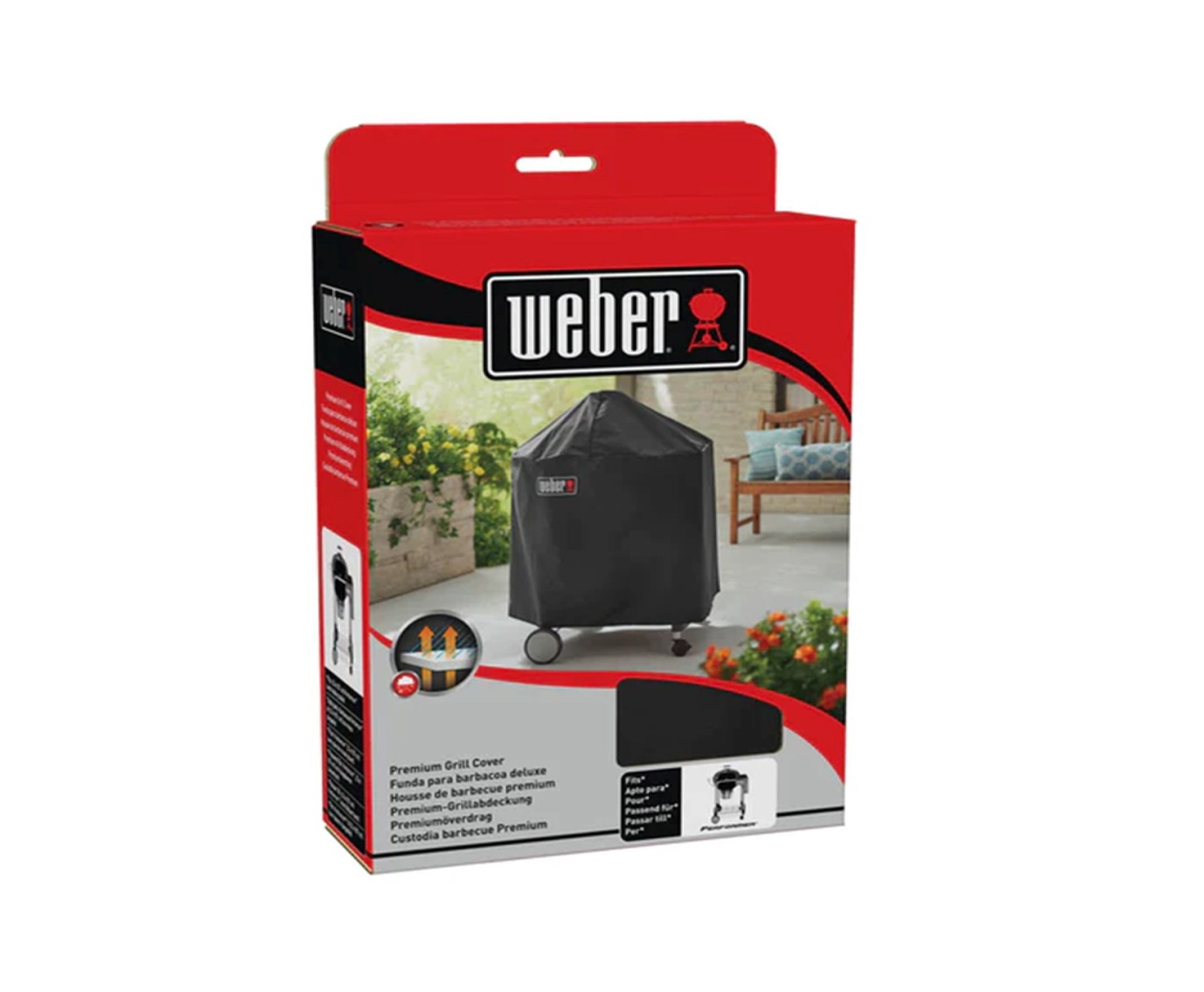 - This premium cover in heavy-duty, breathable polyester offers superior weather protection. The velcro strap ensures that the cover stays in place.