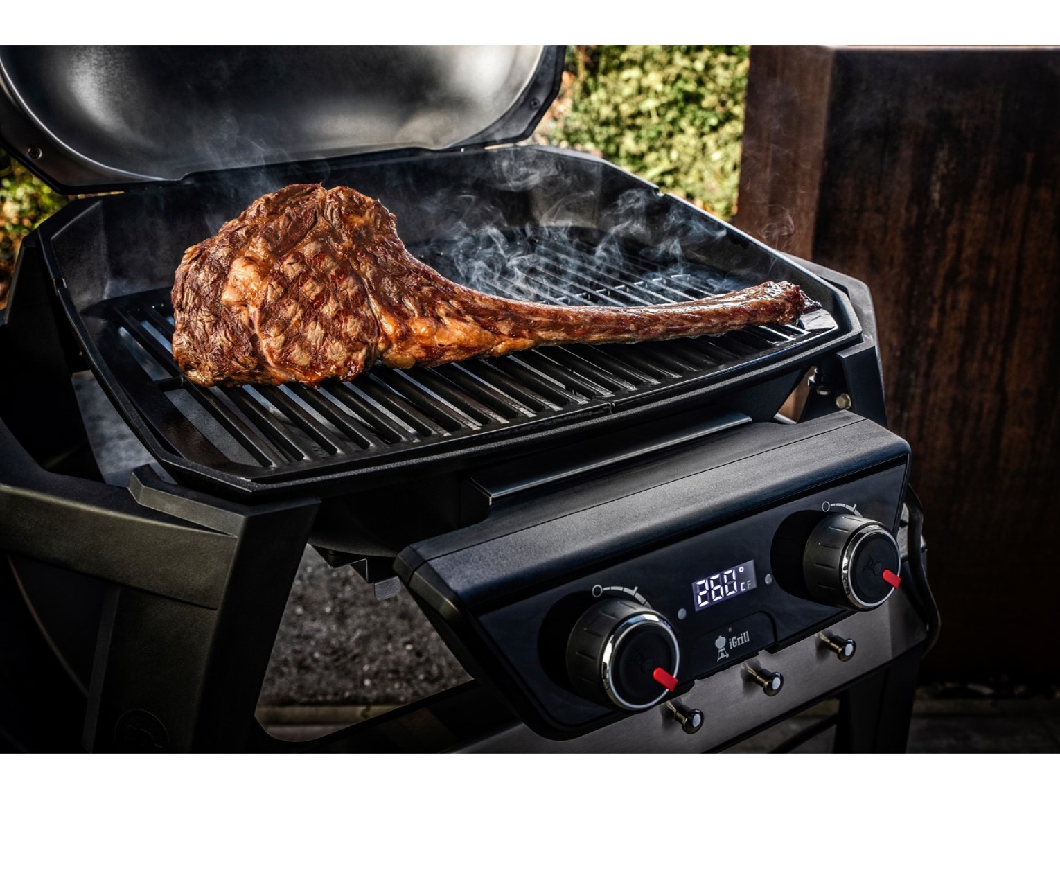 • Porcelain-enameled, cast-iron cooking grates are designed to prevent food from sticking and retain heat perfectl!:I • Dual Zone Grilling• makes it l)OSSible to grill a variety of foods at the same time • Digital Temperature Display on the front panel allows to accuratel!:I read the intemal grill temperature • The integrated app connected iGrill thermometer helps the consumer monitor the temperature of the food • Grease Management System helps to prevent flare-ups and makes clean u
