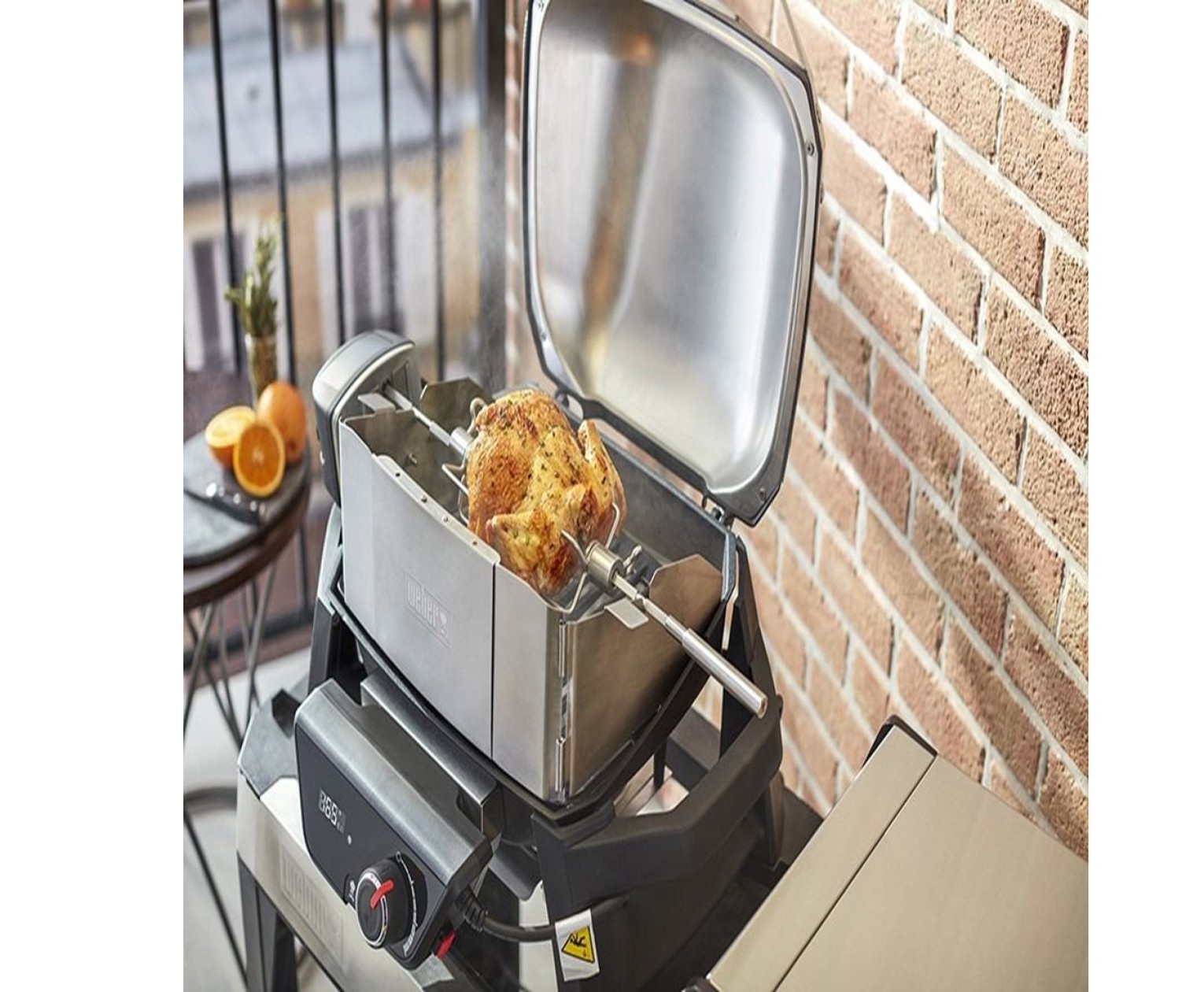 - Turn your barbecue into a backyard rotisserie. Slow-roast a crispy yet moist whole chicken or tender ribs. The Rotisserie gently rotates food above the cooking grate, producing succulent, self-basted