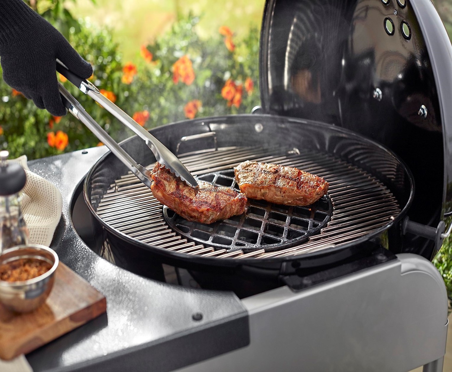 Sear hot and fast to seal in juices for steaks, chops and cutlets.