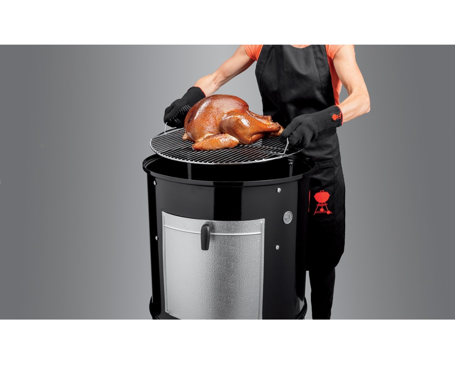 • Porcglain-enamelled bowl and lid, makQs the barbecue weatherproof and easy to clean • Two 57 cm triple-plated cooking grates • lid thermometer • Silicone grommet for use with thermometer probes so you can check the internal temperature without removing the lid so keeping the temperature constant • Rust-proof aluminium vents with heat-resistant plastic handles provide proper airflow for perfect barbecuing • Glass-reinforced nylon handles • Heat deflector under the barbecue me