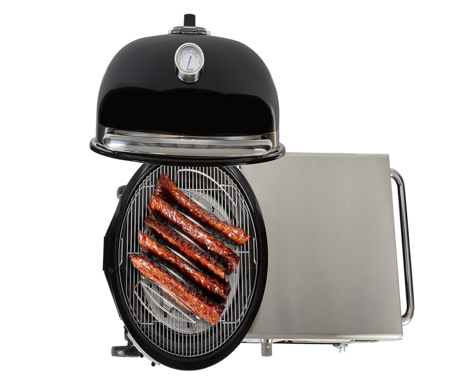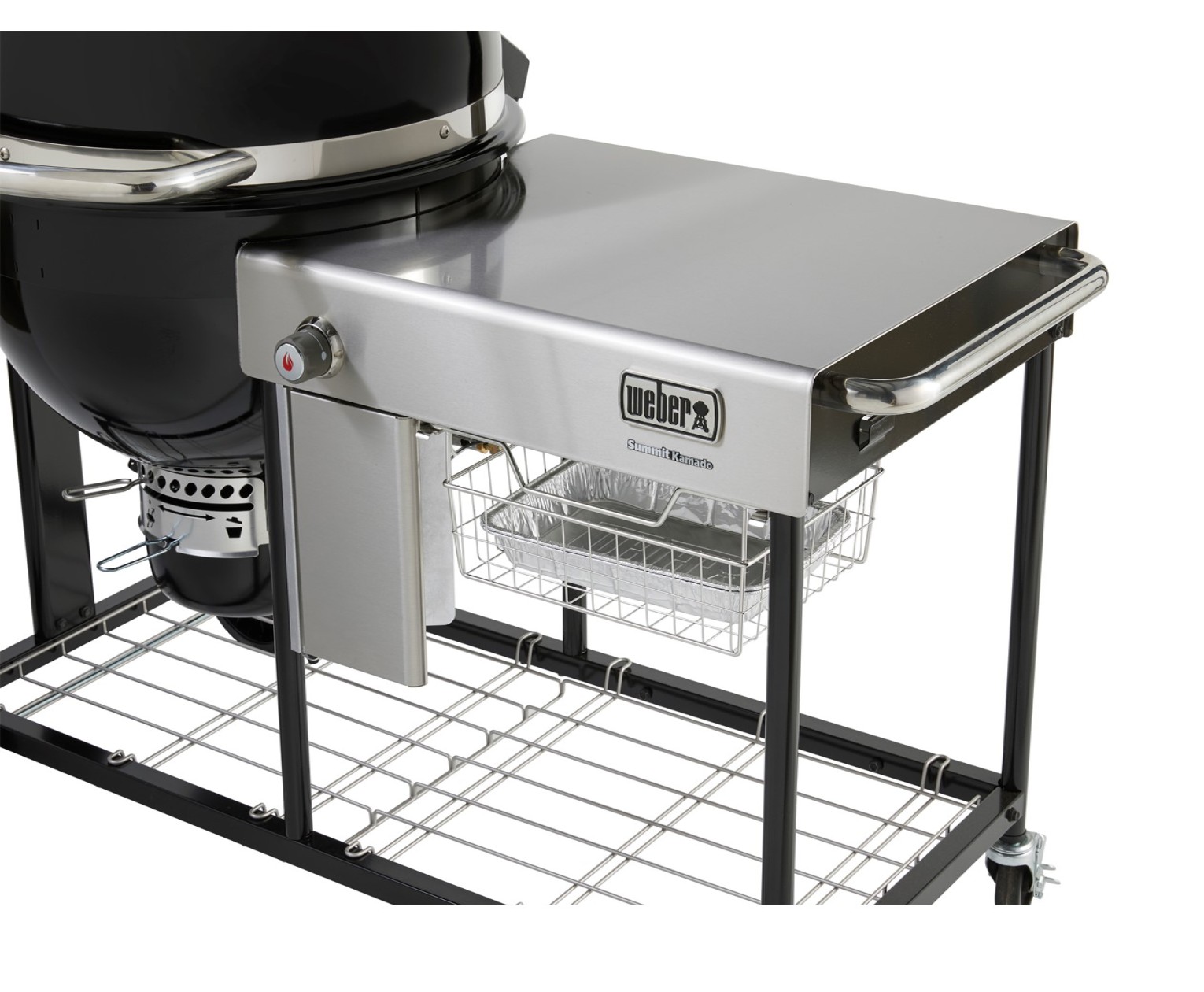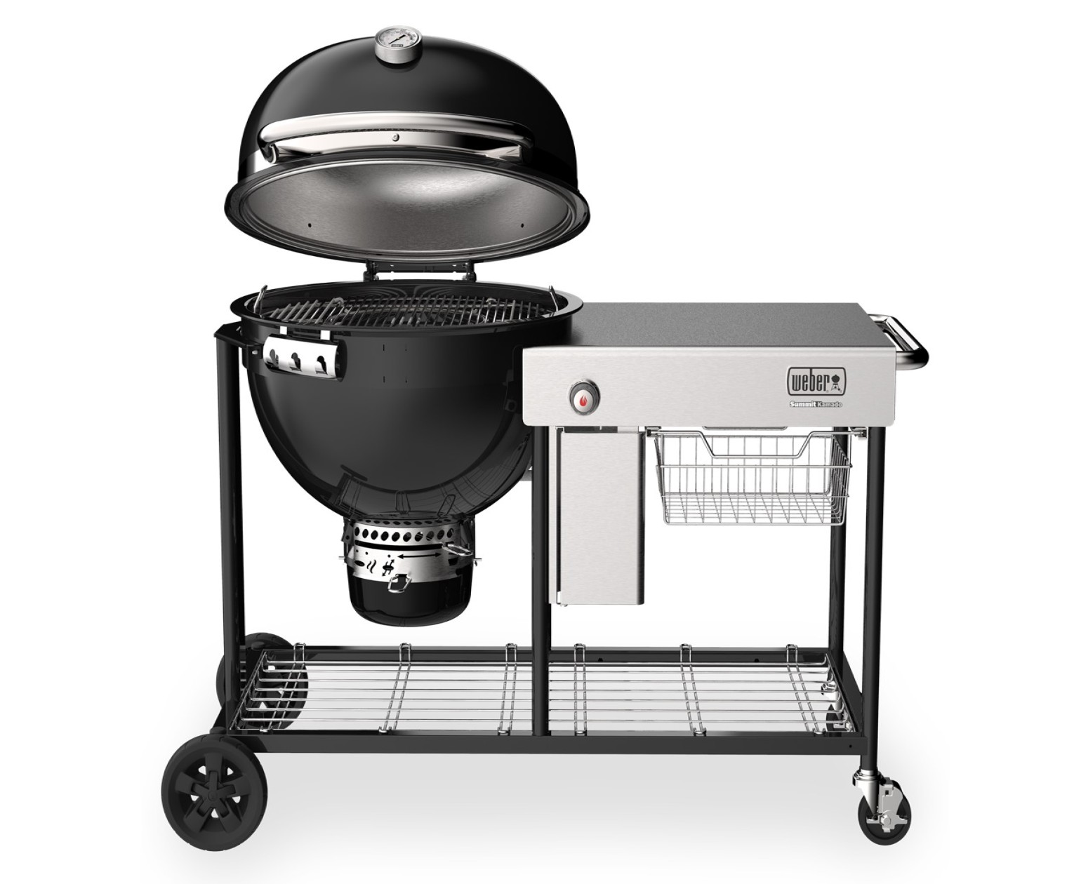 • Snap-Jet Gas Ignition System • Porcelain-enameled steel lid and bowl • Dual-walled insulation for precise, quick temperature changes • Rapid fire lid damper boosts air flow to quickly reach high heat • 61 cm stainless steel Gourmet BBQ System hinged cooking grate • Two durable wheels and two XL casters • Built-in lid thermometer • One-Touch cleaning system with high-capacity ash catcher • Grate hanger hooks • Large bottom shelf
